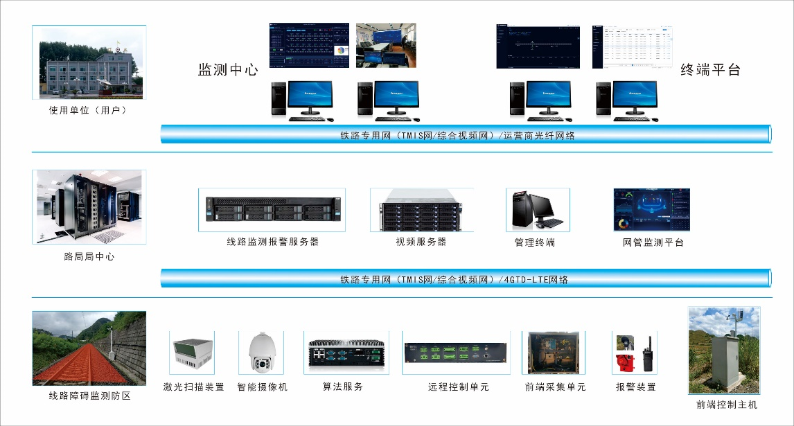 铁路线路横跨地域广泛,沿线环境复杂,在正常运行和维护方面具有更多的特殊性,因山体滑坡、泥石流、雪崩、洪水等导致的路基塌陷、公跨铁立交桥落物等异物侵限危及运输安全的情况也时有发生。为确保铁路行车安全,在各种气象条件下对线路及周边环境进行实时在线监测,自动发现侵入铁路限界内的障碍物,可避免铁路行车事故的发生,减轻值守人员的工作强度。